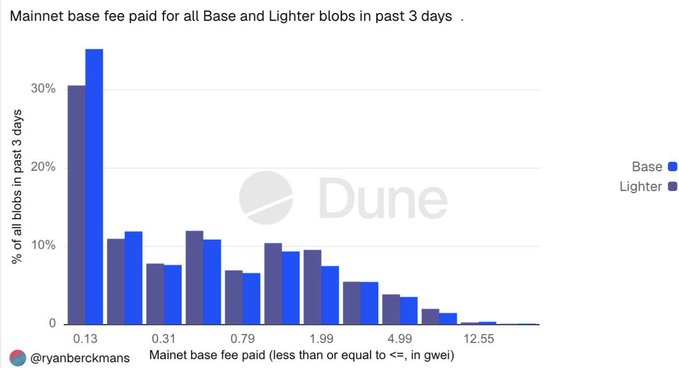 Recent data shows that Lighter's efficiency in using Ethereum blobs is far superior to general-purpose L2 chains like Base. While occupying the same blob space, it can burn approximately five times more ETH (and potentially more). In the future, the more customized L2 application chains like Lighter emerge, and with the Fusaka upgrade in early December, especially after the minimum price guarantee mechanism of EIP7918, Ethereum is expected to capture more revenue from L2 (the amount of ETH burned is expected to continue to increase, although an increase in the overall transaction volume of L2 is also important).