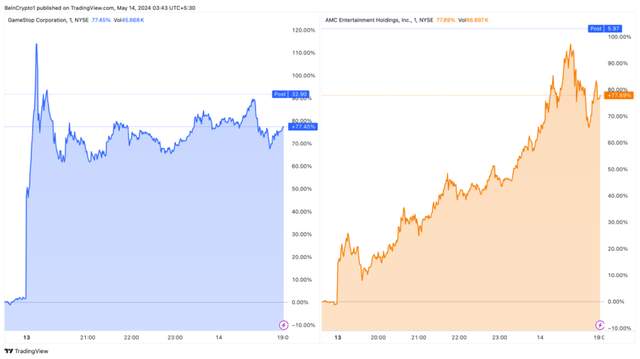 GME and AMC stock price trends