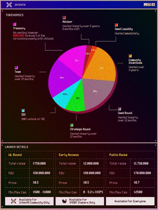 We're bringing mobies a heavy contender in the perp DEX arena. @IntentX_ is raising $4.5M in THREE rounds. $MOBY stakers and @IntentX_ community are prioritized in the WL Round and Early Access. 👇
