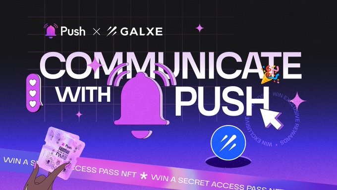The #CommunicateWithPUSH contest is picking up heat! Want to win the limited edition Push Alpha Access Pass?🏆 It's fairly easy: 1️⃣Head over to the @GalxeQuest campaign here: app.galxe.com/quest/PushProtoc...… 2️⃣Sign In with your wallet address/email. 3️⃣Complete the given tasks