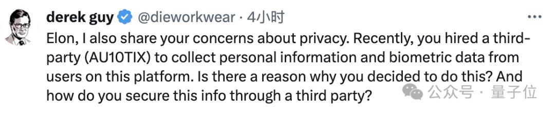When it comes to privacy issues, another netizen said, "Lao Ma, although I am as concerned as you, you should stop talking about others first. You recently hired a third-party company to collect the personal information and biometric information of X users. Can you explain what you are doing? And how do you ensure that this information is safe in the hands of a third party?"