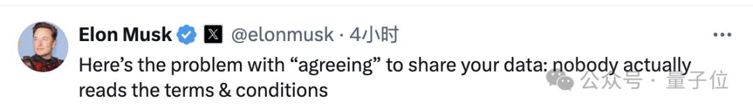 In addition, Musk also said that even if users consent to uploading files to ChatGPT, this "consent" is problematic because people will not read the user terms at all.