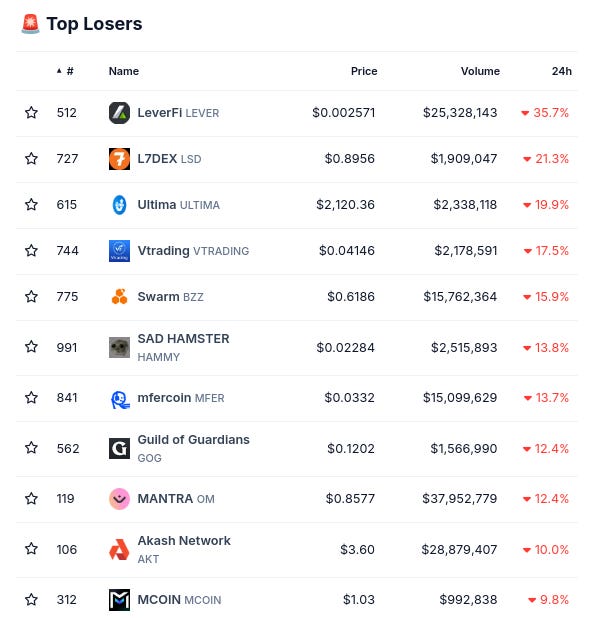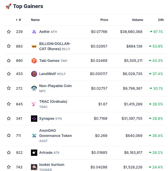 (From @coingecko top 1000, by 24 hour change)