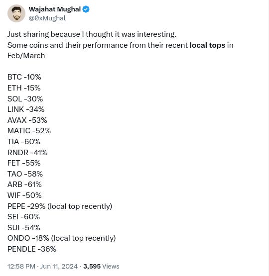 -Majority of alts are down considerably from February/March highs, h/t @0xMughal: