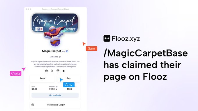 We just partnered with http:/flooz.xyz, So now you can buy $CRPT off chain with your fiat card! @flooz_xyz are levelling up the way communities can interact with their projects Magic Carpet thinks we can add a little something special ✨ 👀👀 flooz.xyz/MagicCarpetBase