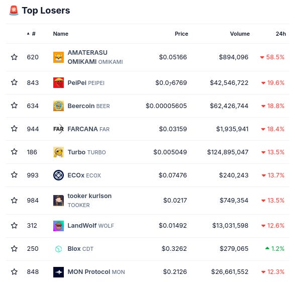 (From @coingecko top 1000, by 24 hour change)