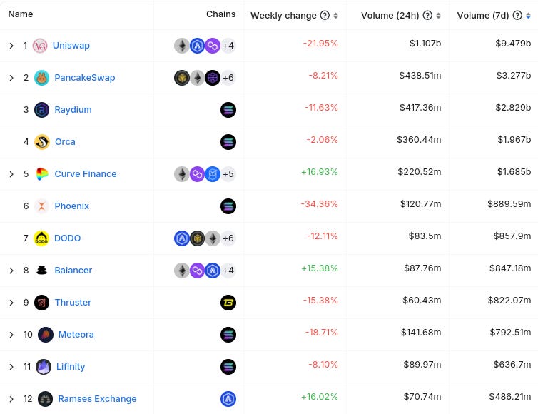 Here’s The Top 12 Dex’s By 7 Day Volume (from @DefiLlama):