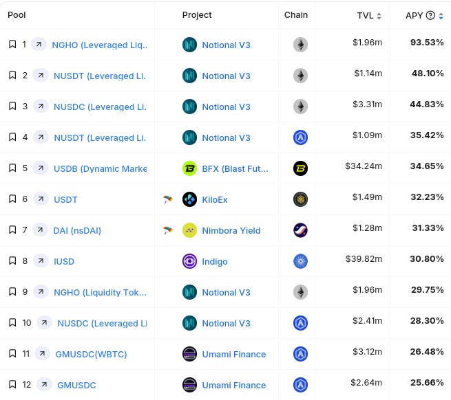 Top Stablecoin Yields
