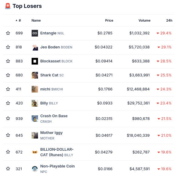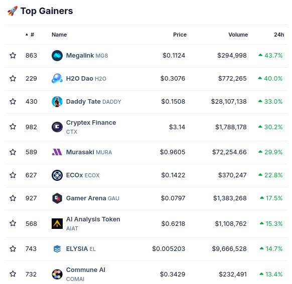 (From @coingecko top 1000, by 24 hour change)