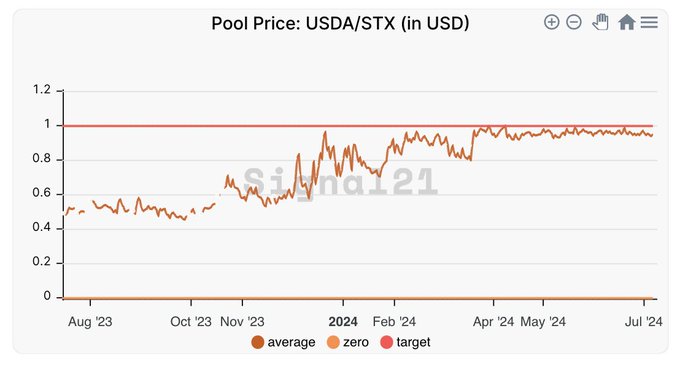 The stablecoin $USDA from @ArkadikoFinance held it's peg throughout Q2 2024. Very impressive, especially bc the overall market has been volatile the last few months #Bullish $DIKO 🐂