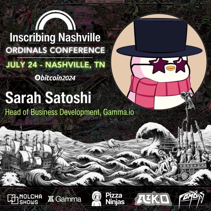 📣 INSCRIBING NASHVILLE SPEAKER ANNOUNCEMENT 📣 Sarah Satoshi will speak at Inscribing Nashville, the Official Ordinals Conference of Bitcoin 2024, on July 24 @ Vū Nashville! @sarah_satoshi is the Head of Business Development at @trygamma