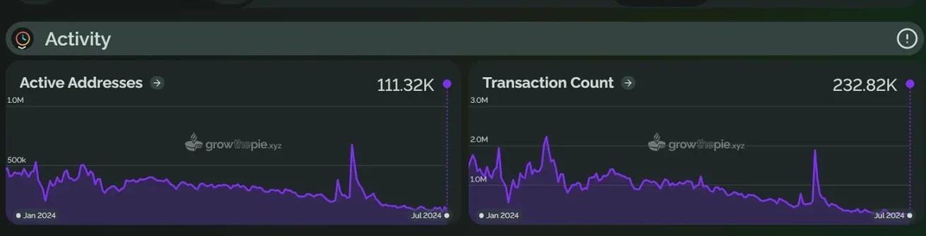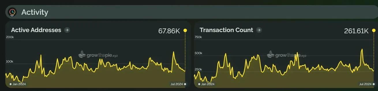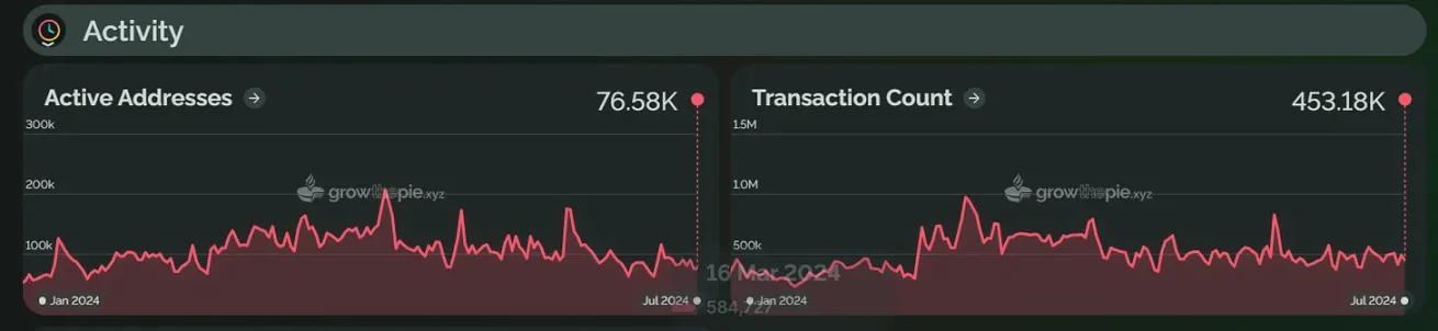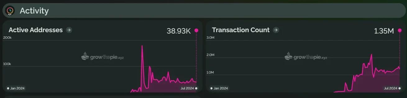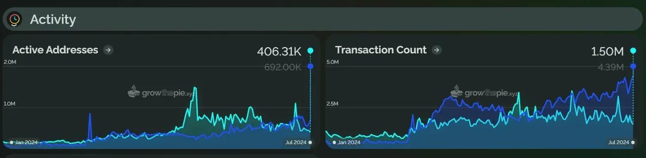 In the first half of 2024, the number of active addresses of Scroll increased by 13.4% compared with the beginning of the year, and the average daily transaction volume increased by 27.7%. Unlike the increase in Scroll TVL, the increase in the number of active addresses and average daily transaction volume was not large.