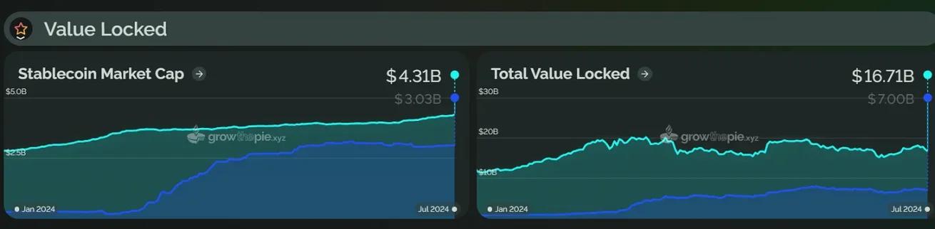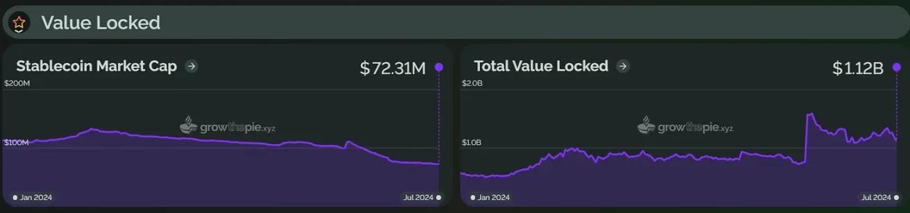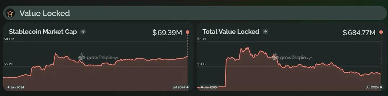 Similarly, in the first half of 2024, the total locked value of Starknet began to rise significantly on February 20 and reached a record high of $1.776 billion on March 14. This growth was mainly driven by the STRK token airdrop plan and Starknet The Starknet Spring DeFi Incentive Program was launched by the Foundation. However, as of now, Starknet's TVL has fallen back to about US$685 million, down about 61% from its peak.