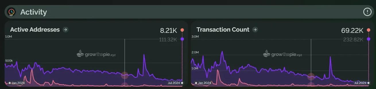 Taiko’s mainnet was launched in May 2024, and its TVL reached an all-time high of $190 million on June 5, but then fell back to $163.45 million. The number of active addresses fell 78.3% after the June peak.