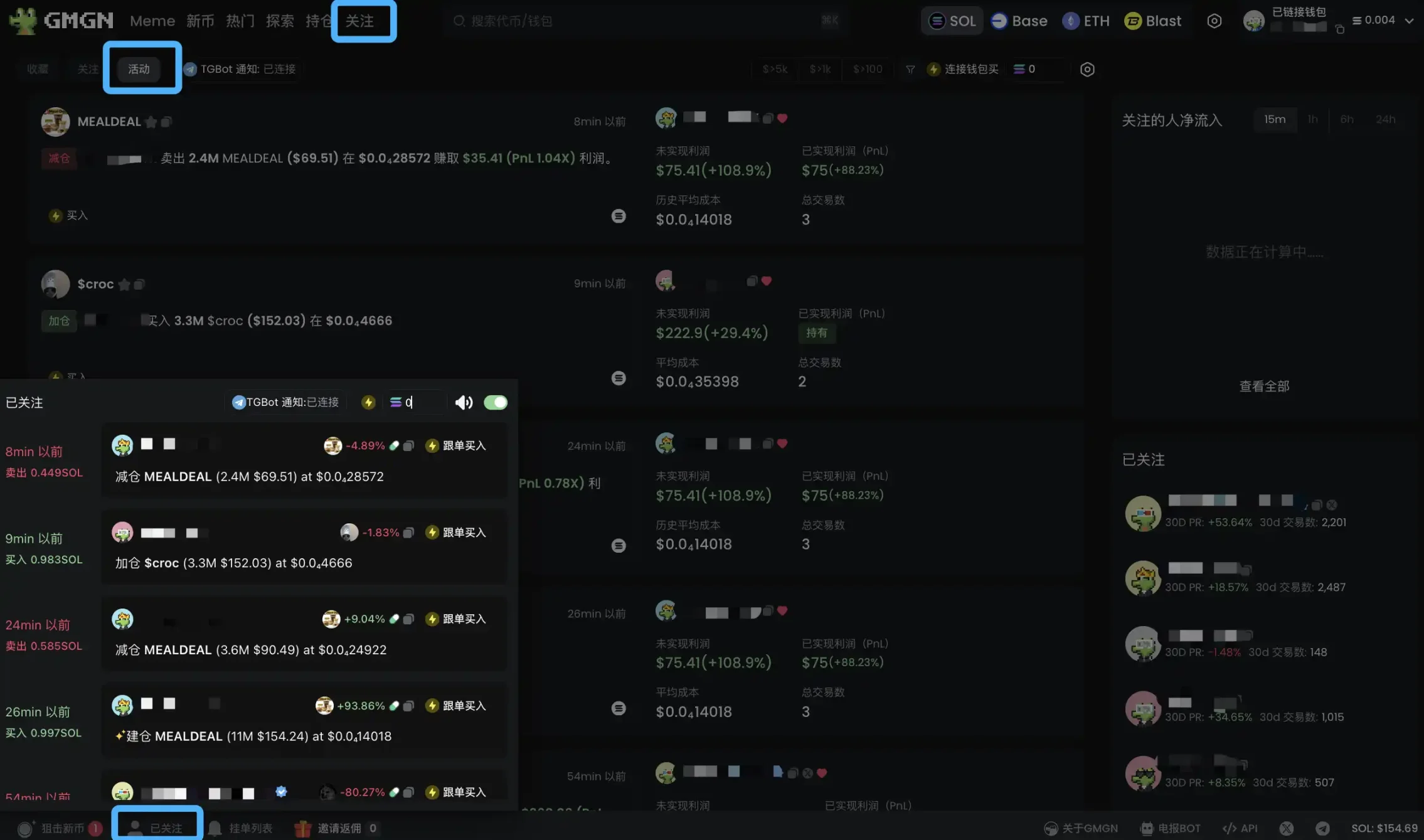 In addition, GMGN has also set up a "Following" column at the bottom left of the page to allow users to capture smart money trends at the first time.