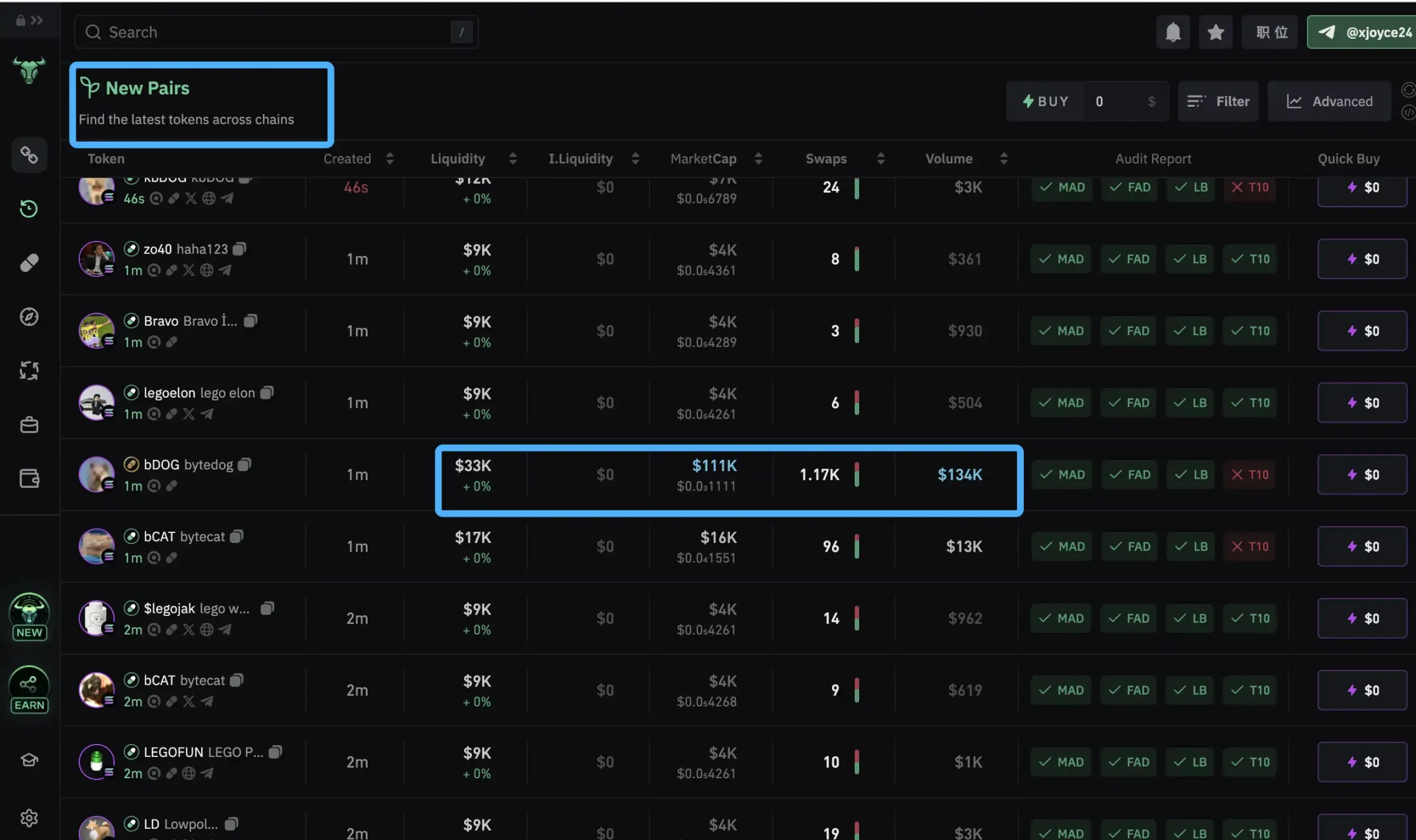 The most common scenario faced by traders who are new to meme is to see a new meme coin in the community and then analyze the coin from aspects such as security and chip structure to decide whether to trade it. In this scenario, things that can help include website-based tools and trading BOTs.