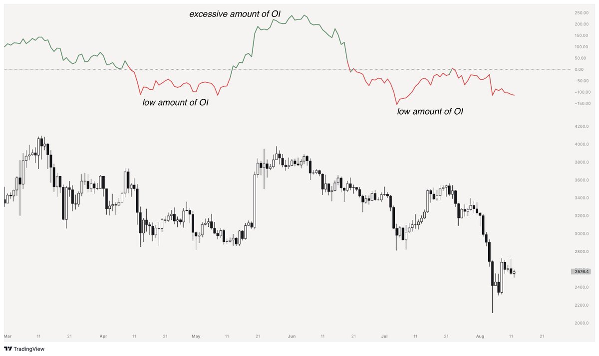 more often than not, an excessive amount of open interest or lack of interest leads to a mean reversion.