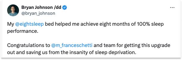 Even Bryan Johnson, who is spending millions of dollars on his body to reverse his biological age, sleeps on an Eight Sleep.