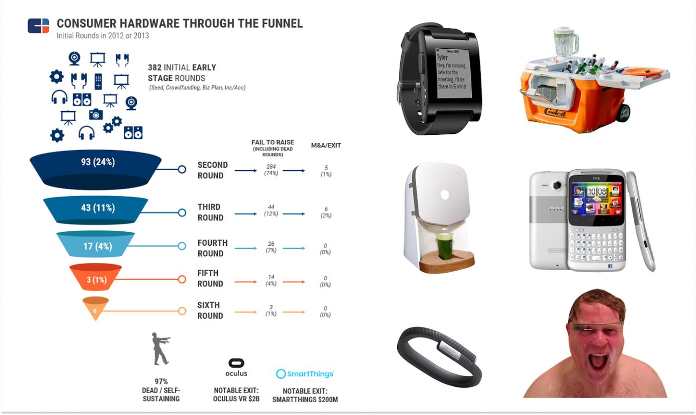 In 2017, Crunchbase did an analysis of hardware companies a couple years ahead of Eight Sleep’s vintage (first raised in 2012 and 2013), and just five years in, 97% had failed.
