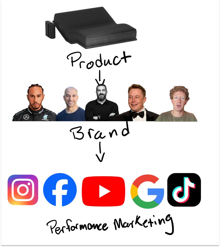 That decision was a game changer. It shaped how the company acquires customers. Matteo thinks about it in three steps: product, then brand, then performance marketing.