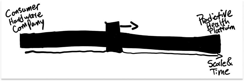 It started as a full consumer hardware company. If it’s successful, most of its value will come from the predictive health platform. As it grows, it slides closer to that end.