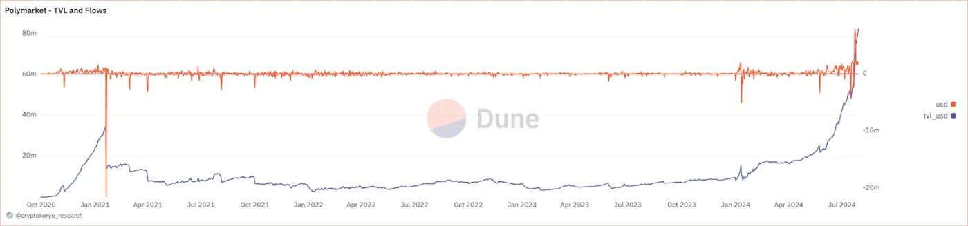 This growth is consistent with a rise in daily trading volume, as much of the new volume came from users joining Polymarket to bet on major events such as the US election.