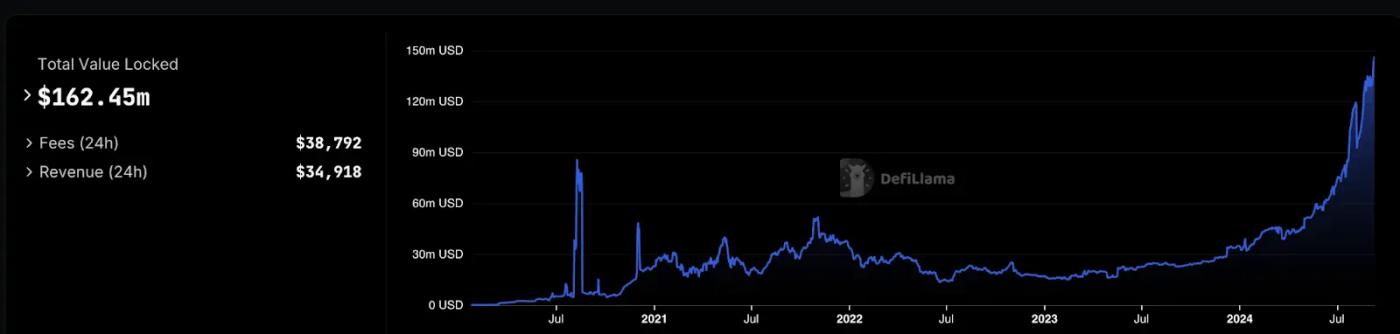 While the Defilama chart shows the industry since its inception, the majority of TVL accumulation occurred in 2024.