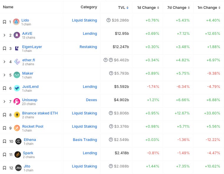 Here’s The Top 12 Protocols By TVL (from @DefiLlama):
