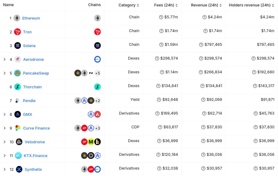 Here’s The Top 12 Entities By 24 Hour Token-Holders’ Revenue (from @DefiLlama):