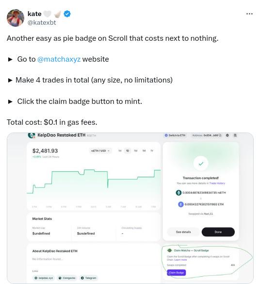 -Still seeing decent number of posts regarding farming the Scroll airdrop, example h/t @katexbt below: