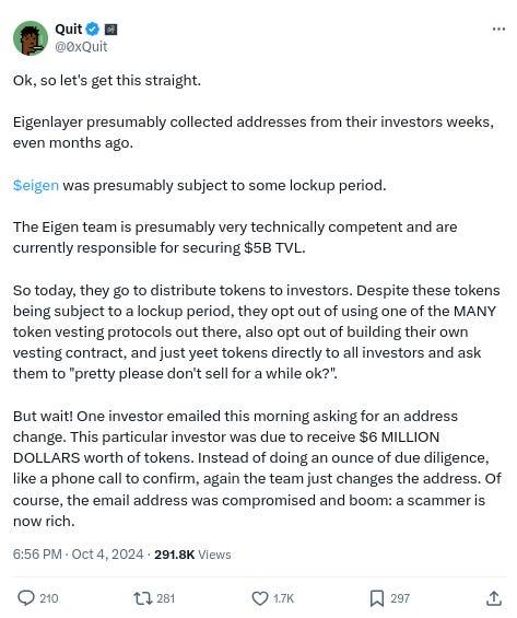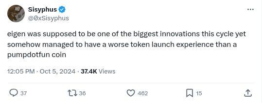 -Much EigenLayer criticism on the TL right now, h/t @0xSisyphus and @0xQuit (note: due your own due diligence on the specifics regarding all of this stuff - we are just trying to accurately report on + sample the general sentiments):