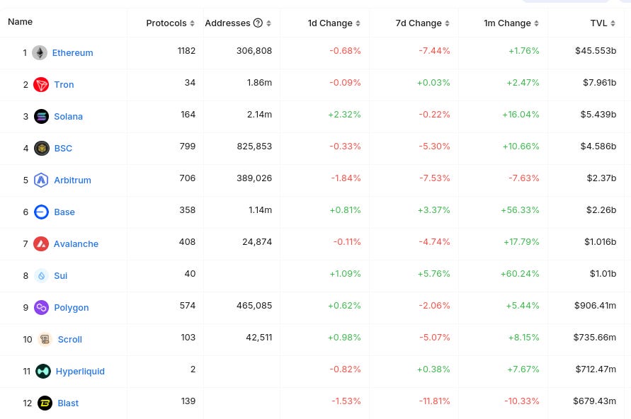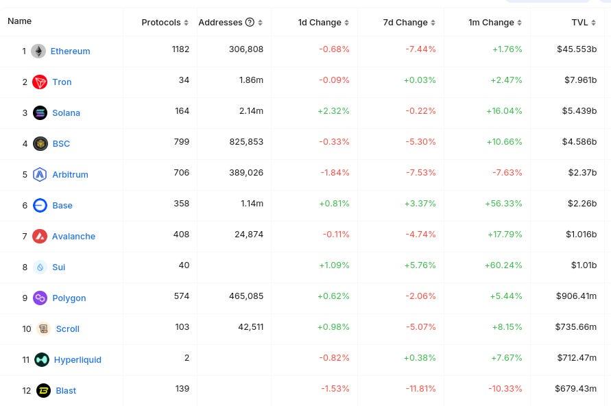Here’s The Top 12 Chains By TVL (from @DefiLlama):