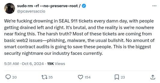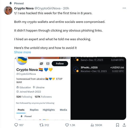 -Another important security reminder/thread from @CryptoGirlNova (tl/dr the hackers impersonated a project that wanted to work with her and sent her a link to a reddit thread on how to ‘fix’ her software for the video call that actually was an elaborate ploy to get her to install malware):