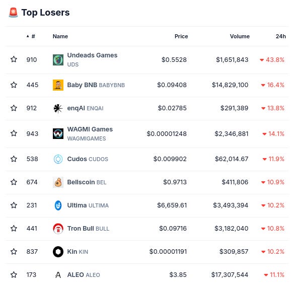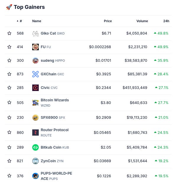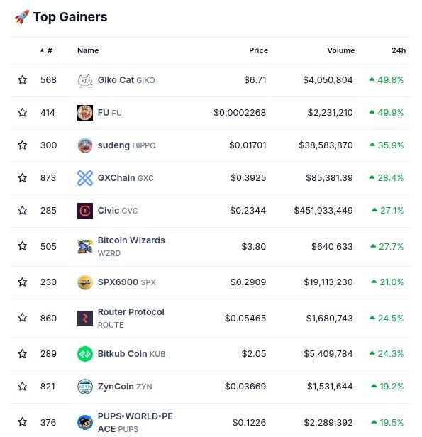 (From @coingecko top 1000, by 24 hour change)