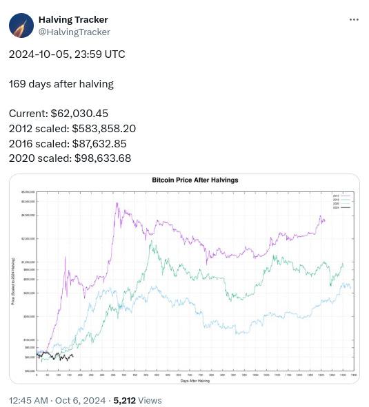 -Bitcoin has underperformed since halving so far relative to previous cycles, h/t @HalvingTracker: