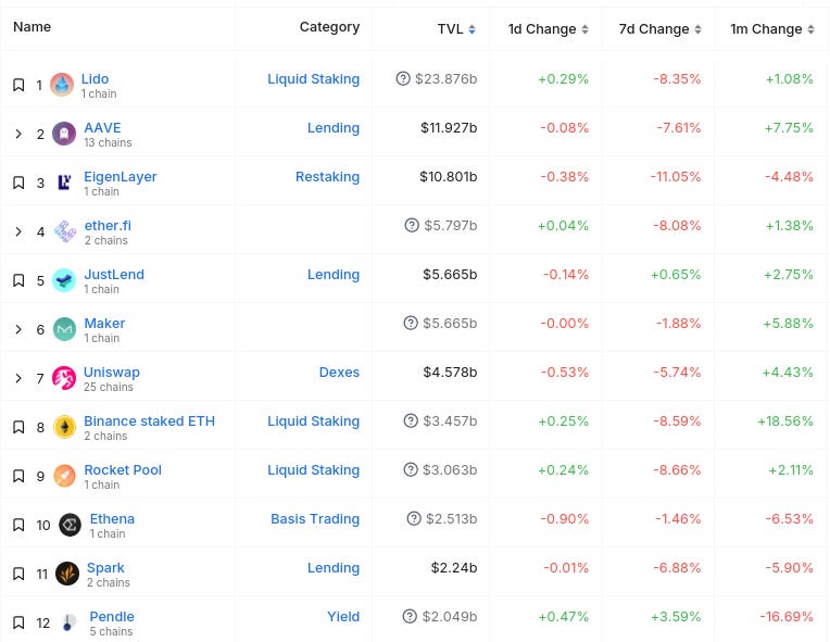 Here’s The Top 12 Protocols By TVL (from @DefiLlama):