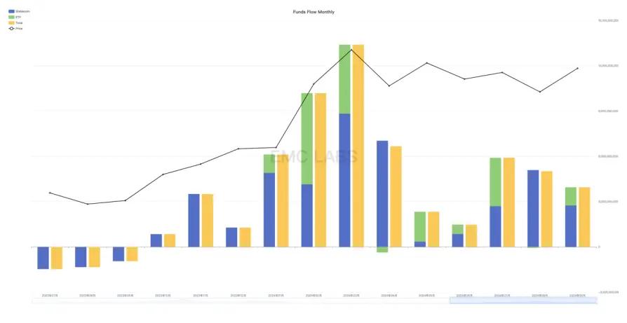 In previous reports, we have mentioned many times that the driving force of the first phase of the bull market mainly came from the position covering of on-site funds and the new funds before and after the approval of BTC ETF. As major central banks around the world enter the stage of liquidity expansion, EMC Labs believes that the subsequent rise in BTC asset prices mainly comes from the revaluation caused by monetary expansion and the new allocation of traditional capital to BTC ETF.