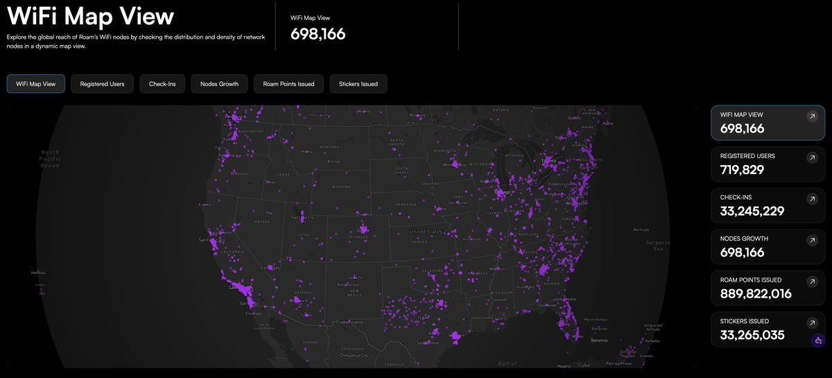 The WiFi network @weRoamxyz has seen an average daily growth of 4,200+ nodes, with a total of 698,000 nodes. The cumulative total check-in count has reached 33.24 million. The rapid growth in data is due to the project's recent frequent actions: 1⃣ Launching the Telecom Data Layer decentralized telecommunications data network: This will be a network connecting people, hardware devices, AI... <x.com/i/web/status/18445941929...> <twitter.com/weRoamxyz/status/1...> 'ROA' must be translated into 'ROA'. 'HT' must be translated into 'HT'. 'MX' must be translated into 'MX'.