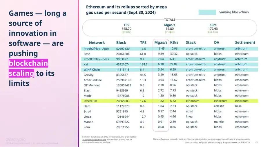 This is another EVM-centric perspective, this time related to the gaming domain. Using mgas/s as a metric to evaluate gaming infrastructure excludes Solana and other non-EVM networks, leading to meaningless comparisons and limiting our view to only a portion of the blockchain gaming ecosystem.