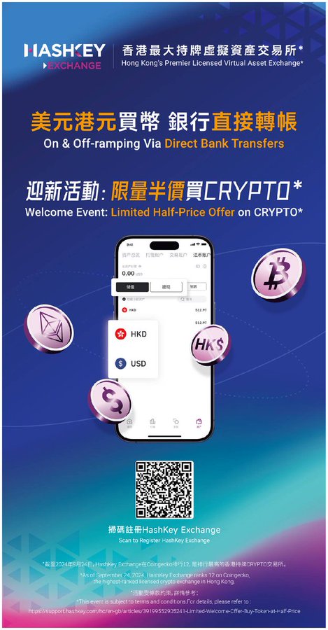 🌟< Announcement >🌟 HashKey Exchange Limited Welcome Offer - Buy Token at Half Price From October 28, 2024, to November 10, 2024 (UTC+8), the first 200 new customers to pass KYC (regardless of registration time) can enjoy the half-price offer for their first purchase of