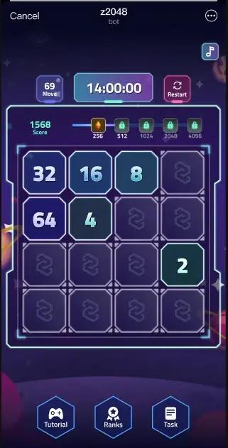 Z2048 challenges players to move and merge blocks by sliding to form higher values. The goal is to reach the highest block value before the board fills up.