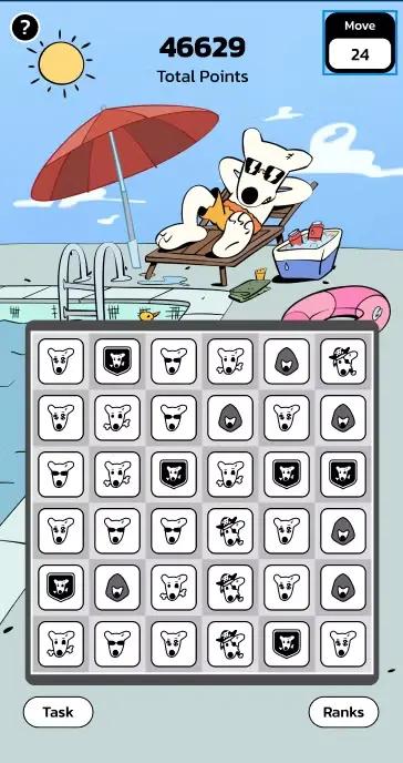 Dogs Eat Dogs requires swapping patterns in a grid to match three identical patterns. Eliminated patterns help players earn airdrop points.