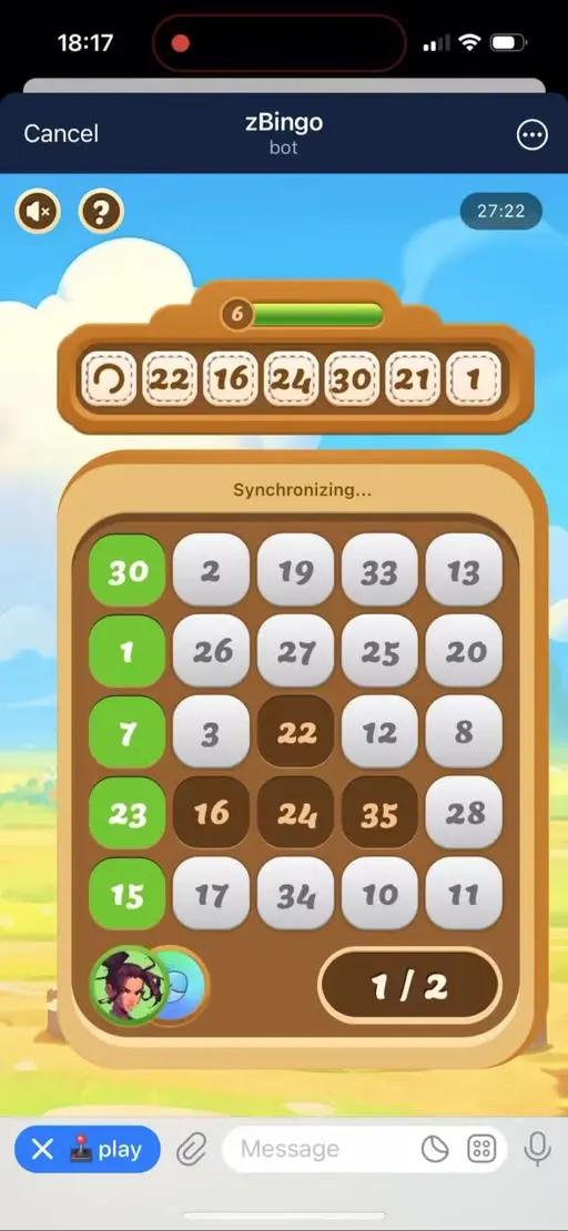 On Telegram, the Bingo game has a 5x5 grid where players take turns marking numbers. The first player to connect two straight lines wins.