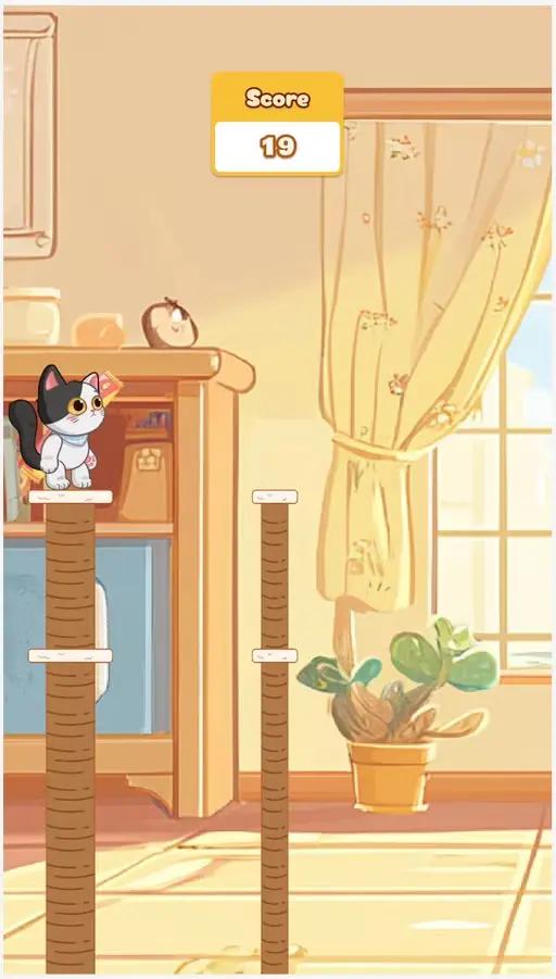 In Stick Cat, players extend the stick to connect the gaps between platforms and move the cat forward. Successful jumps earn points, while misjudging the length results in failure.