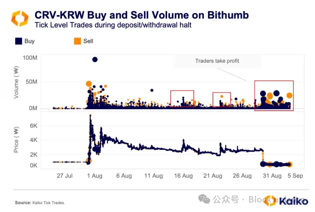 For example, the "net-fishing-style pump" phenomenon is common in the Korean market (where retail investors are attracted by the price pump and then the pool is drained). Traders take advantage of the temporary suspension of deposits and withdrawals to artificially inflate asset prices and profit from it. A typical case occurred in 2023, when the native token of Curve (CRV) was temporarily suspended from trading on several Korean exchanges due to a hacker attack.