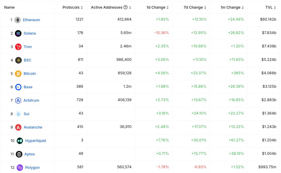 Here’s The Top 12 Chains By TVL (from @DefiLlama):