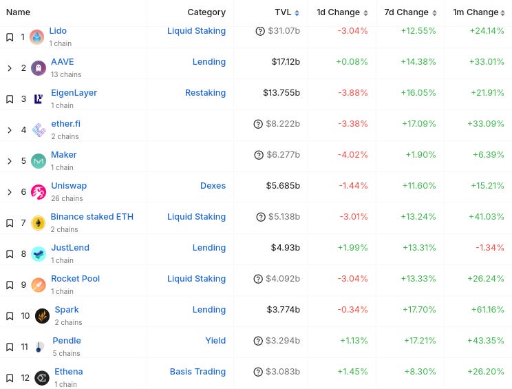 Here’s The Top 12 Protocols By TVL (from @DefiLlama):