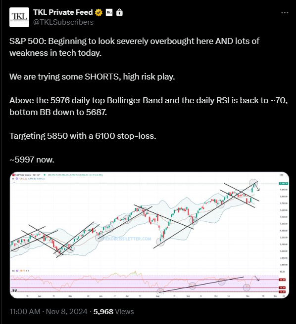 2 weeks ago, we took shorts in the S&P 500 at 6,000 and called for 5850.