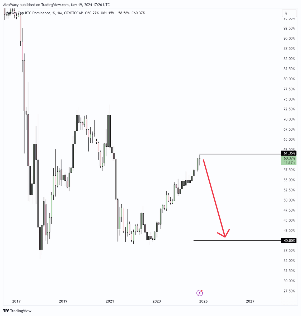 Stay cautious and prepare to build positions in alts during the next pullback.
