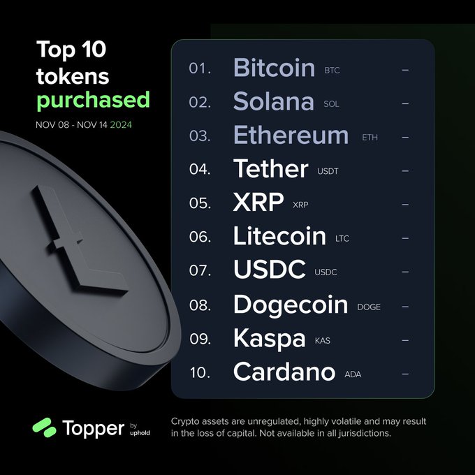 GM and happy Saturday! 👋 Nothing new to report this week—top tokens purchased on #Topper remain the same as last week. Quick reminder: go touch grass today.